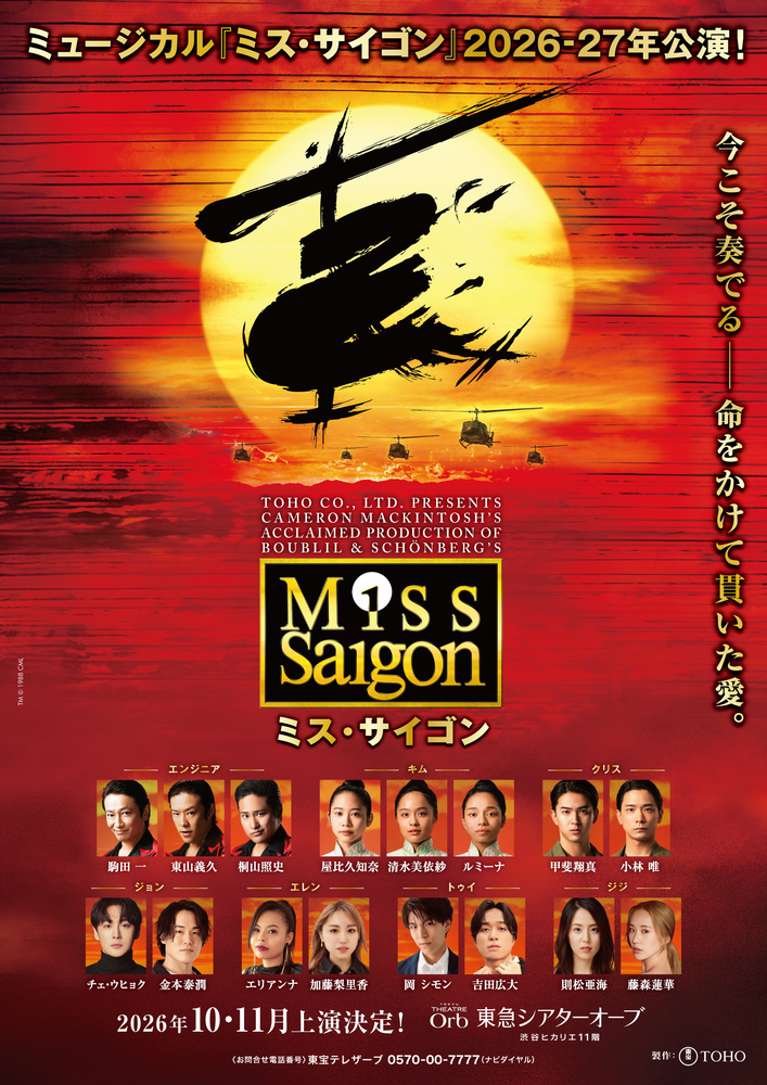 この度、2026年10月より上演されるミュージカル『ミス・サイゴン』にて、ジョン役を務めさせていただくことになりました。